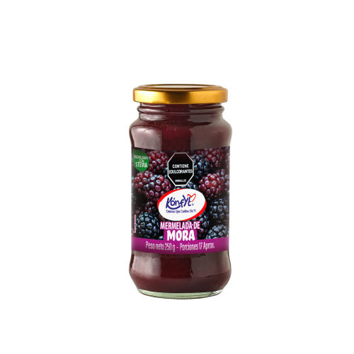 Mermelada de mora sin azúcar adicionada. Elaborada con frutas frescas y maduras 100% Colombianas.