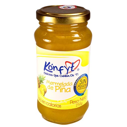 Mermelada de piña sin azúcar adicionada. Elaborada con frutas frescas y maduras 100% Colombianas.